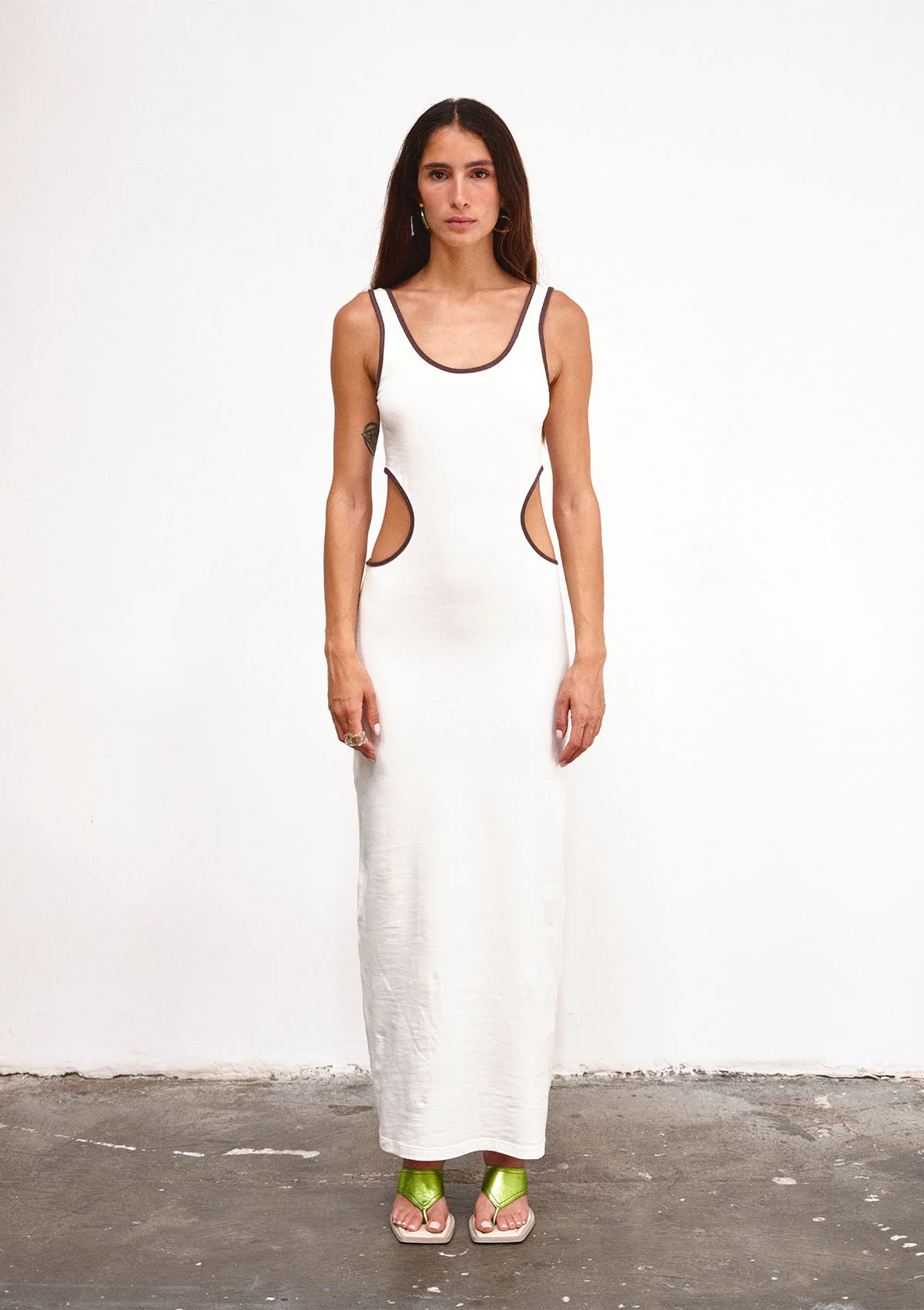 Effortless charm meets style in this cotton dress with unique detailing. Featuring strategically placed waist holes, it adds a cool and unique touch to your look.