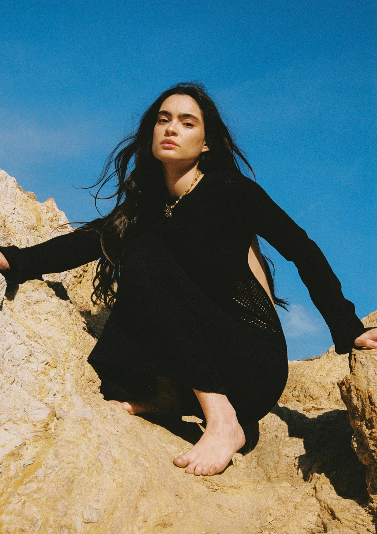 Elevate your elegance with this long knitwear dress. Designed to be the ultimate fashion choice, it features strategic see-through details at the waist for added style and allure.