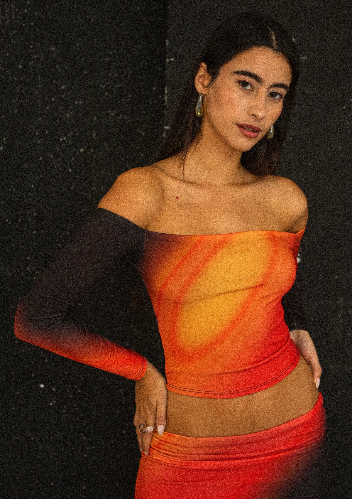 Designed to complement the "Yo x ti" top, this reversible skirt boasts a custom print that seamlessly coordinates with your outfit. With its versatile style and unique design, this skirt offers multiple fashion options, allowing you to express your individuality with ease.